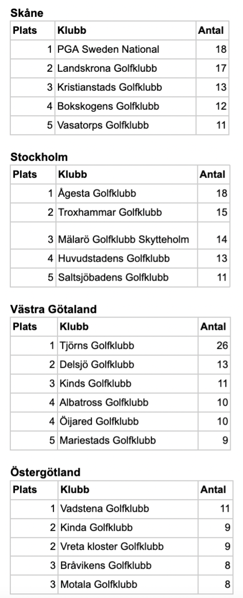 En genomgång av registrerade hole in ones under åren 2017-2021 visar att det slogs flest sådana på Landskrona Golfklubb i Skåne. Ungefär 1,4% av alla slagna hole in ones under dessa år noterades ha utförts där.