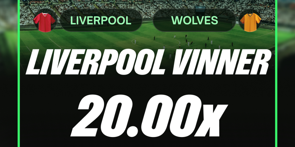 Normalt odds på Liverpool i den här matchen mot Wolverhampton är 1.20 gånger pengarna. Så det är inget kasst erbjudande direkt att få 20 gånger smeten i stället! Detta får alla nya kunder hos ComeOn som väljer det som sin boost och gör en insättning på minst 100 kr.