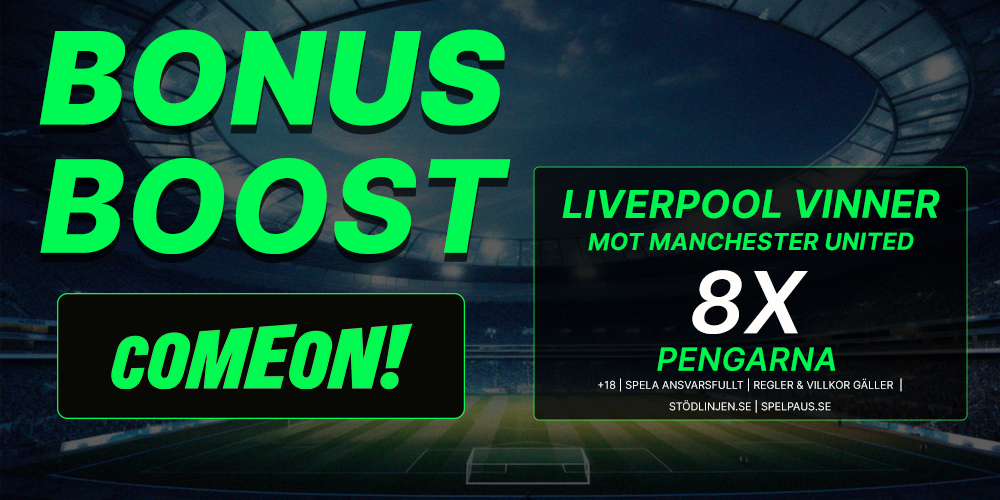 ComeOn erbjuder nya kunder ett riktigt roligt spel i helgen. För den som tror att Liverpool slår rivalen Manchester United så boostas oddset till åtta gånger pengarna!