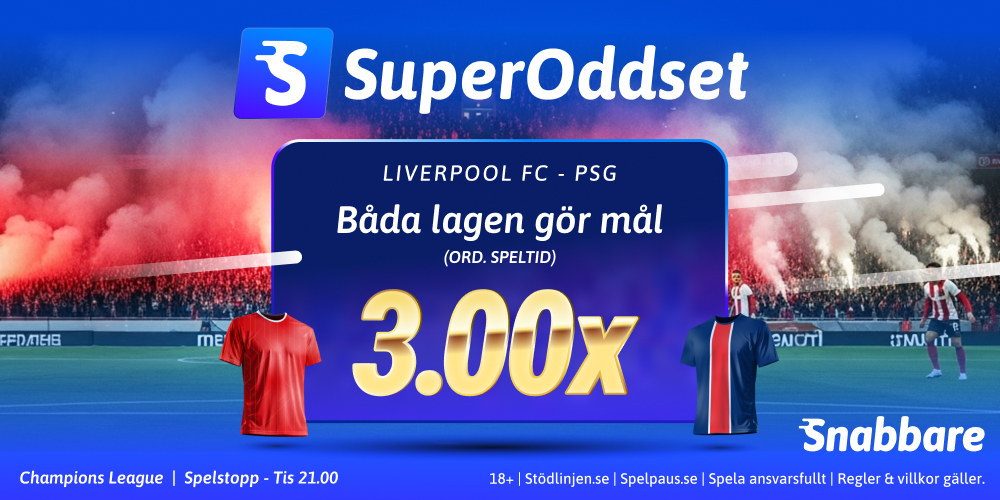 Liverpool gästas av franska mästarna Paris och måste vinna med minst två mål för att drömmen om Champions League ska leva. Liverpool har haft en kämpig säsong i ligan och nästan hela fotbollsvärlden undrar varför Arne Slot fortfarande är tränare. Nu väntar ett ordentligt ångestmöte för liverpool och Snabbare boostar oddset på att båda lagen gör mål!
