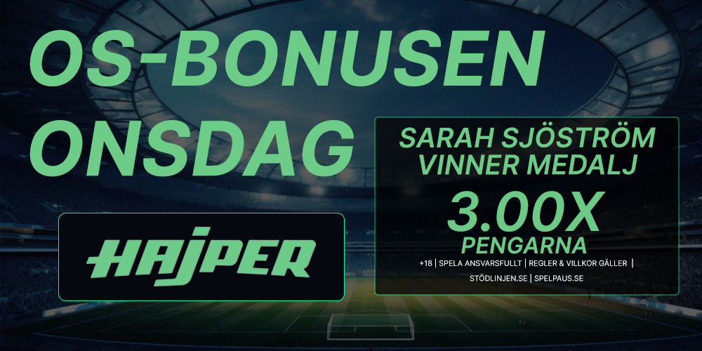 I samband med detta kan vi nu tillsammans med Hajper erbjuda Sarah Sjöström att vinna medalj till hela 3.00 gånger pengarna. Ett väldigt fint boostat odds från Hajper som skapar extra krydda till detta spännande mästerskap i stort, men också för svensk del!