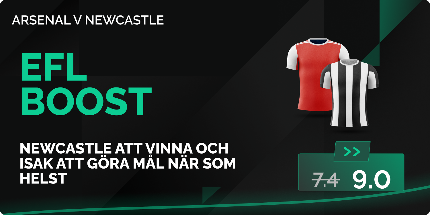 Tror du att Newcastle vinner och Isak gör mål i matchen? Då får du hela nio gånger pengarna i stället för 7.40 som vore det normala.