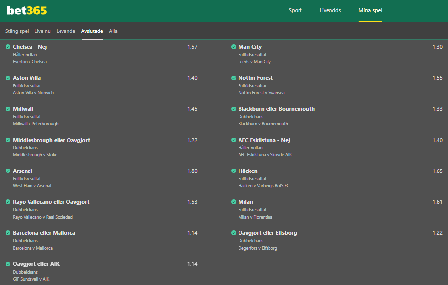 Tio satsade kronor blev över 1700 kronor tillbaka och Hammar var nöjd med inspirationen han fick på Rekatochklart. Här nedan ser ni hela kupongen där alla matcher rättades grönt.