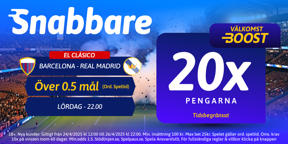 På lördagskvällen spelas ett stekhett El Clasico i Sevilla: Copa del Rey-finalen. Snabbare erbjuder sina nya kunder 20x pengarna på alla resultat förutom 0-0!